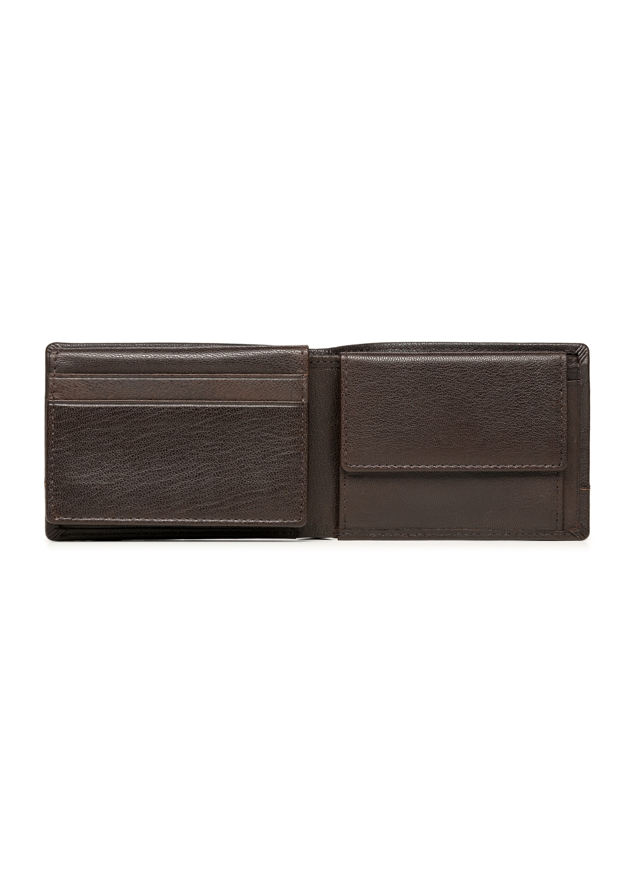 Crafted from smooth-textured genuine leather, this wallet impresses with its elegant finish and durability.